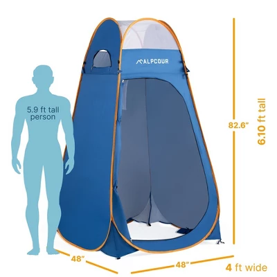 The Alpcour Portable Pop-Up Tent ensures comfort and privacy when showering, changing, or answering nature’s call while camping. Designed to accommodate anyone comfortably with dimensions of 6 ft 10.7” height and 3 ft 11” width and length, this tent is made of durable, lightweight, and 100% waterproof polyester fabric. It boasts a sturdy metal rod frame that withstands wind and rain. This tent comes with essential accessories, including hooks for lanterns and towels, cloth hangers, a toilet paper holder, and a storage pocket for toiletries. It provides secure privacy with its thick material and sturdy structure, reducing worries about being exposed. Easy to set up and fold down, it includes ropes, sandbags, and stakes for a stable installation. A hole for shower attachment and a zipper window for ventilation add to its convenience. Store it compactly in its carry bag when not in use. An included manual guides the installation process.