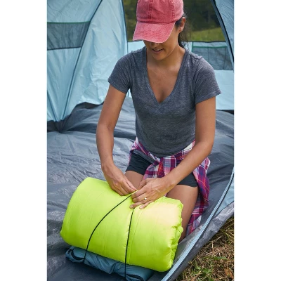 Get a sleeping bag that packs up small and keeps you warm with the Coleman® Kompact™ 30°F Rectangular Sleeping Bag. Thanks to Coletherm™ Max premium and lightweight fill, you’ll get better heat retention with less weight. The compressible stuff sack with cinchable side straps tightens the sleeping bag into a compact size making it easier to carry and store. You’ll stay warm throughout the night thanks to the Thermolock™ draft tube that prevents heat from escaping through the zipper—and with the ZipPlow™ zipper you get snag-free opening and closing every time. The Comfort Cuff™ design provides soft protection and comfort around your face as you fall asleep. When it’s time to pack up, the Roll Control™ design keeps your sleeping bag straight while you’re rolling it and thanks to the Quick Cord™ tying system the bag stays securely rolled. After your last camping adventure of the season, place the sleeping bag in the washing machine so it’s good to go for next time. The Coleman® Kompact™ Rectangular Sleeping Bag is available in 20°F, 30°F, and 40°F for colder to milder temperatures.