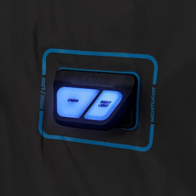 - WHAT’S IN THE BAG Includes tent with pre-attached poles, rainfly with attached guylines, room divider, battery compartment (4D batteries not included), tent stakes, and carry bag.