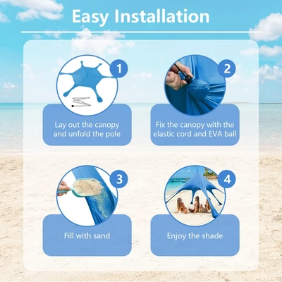 Costway 20 X 20 FT Beach Sunshade Canopy UPF50+ With Carry Bag & 8 Sandbags & Shovel