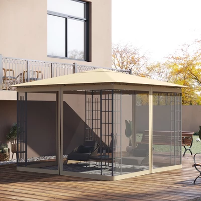 Outsunny 10′ X 10′ Replacement Mesh Sidewall Netting For Patio Gazebos And Canopy Tents With Zippers (Sidewall Only), Beige