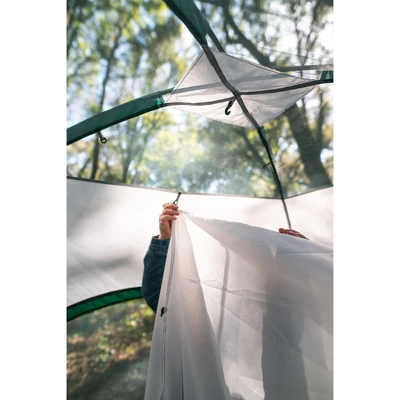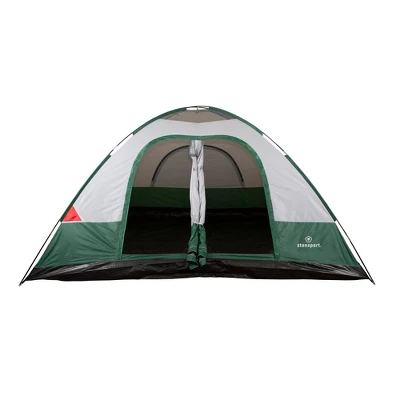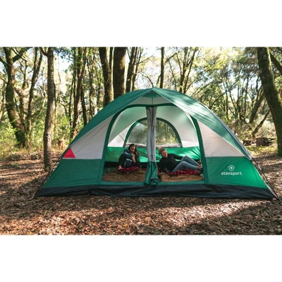 Take the family for a weekend getaway with our “Teton 12” 2-Room Dome Tent. This two-room tent has two large D-shaped entry doors to keep the family under one roof, but with the privacy of separate rooms. Two large side windows, 1 rear window, and a mesh roof add plenty of ventilation while a peaked rain fly keeps the tent dry. Electrical port attached to tent. Tent fabric is 1,000 PU coated and rainfly is 800 mm PU coated. Zippered carry bag included.