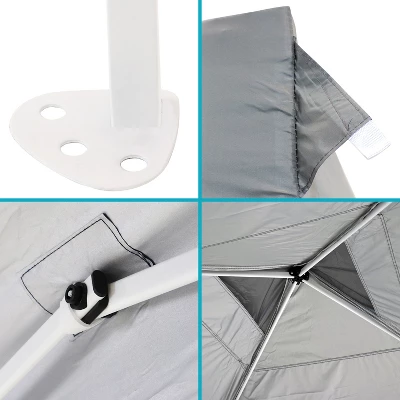 • SHELTER FROM THE ELEMENTS: This outdoor canopy can be used to provide refreshing shade and shelter during the next outdoor party, sport event, camping trip or farmers market. It also features a convenient vent to allow heat to escape and help prevent the roof from filling with air during windy conditions.